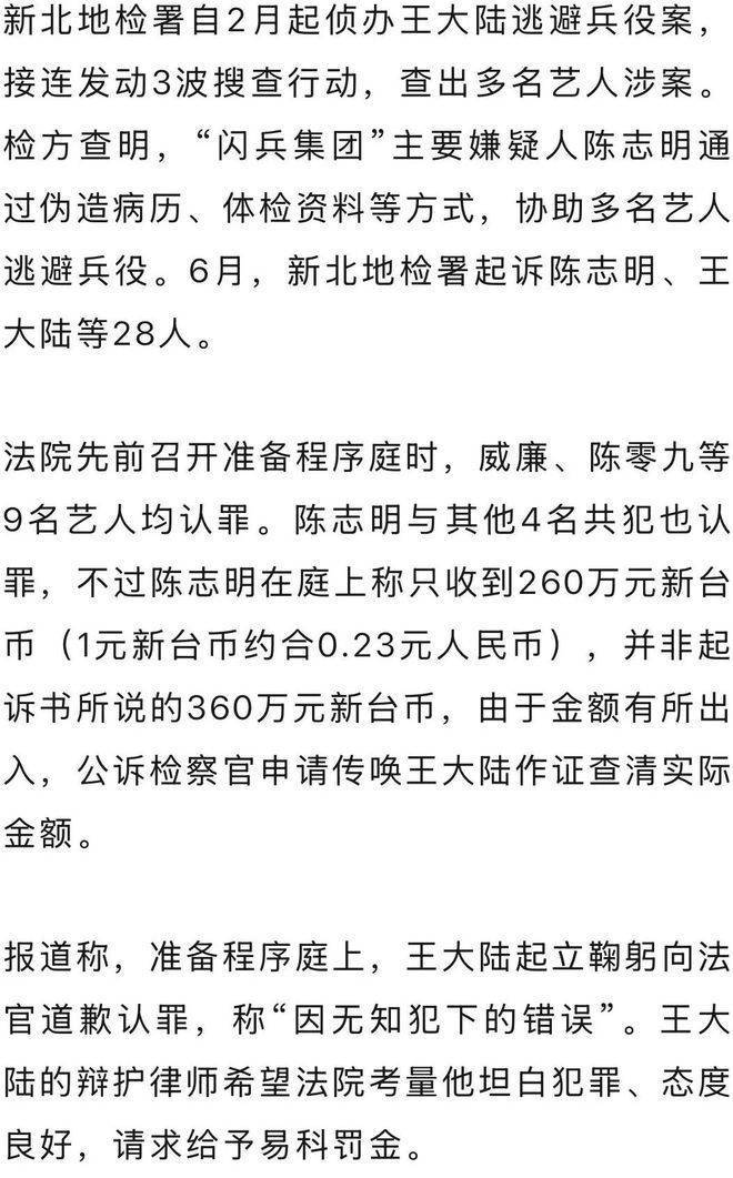 庭审时,王大陆辩解“只是想协商还款”,但法官的话一针见血:“委托黑帮调查隐私本身就是犯罪,与是否使用暴力无关。”从《我的少女时代》爆红到《狼殿下》等剧的资源加持,他曾是两岸三地最被看好的新生代演员,如今却因“走捷径”彻底葬送前程。更讽刺的是,案件还牵出逃兵役旧账——当初若老老实实服役,何至于卷入诈骗?若追讨欠款时选择正规途径,又怎会沦为黑帮帮凶?18万罚金或许能免牢狱之灾,但公众信任一旦崩塌,再高的片酬也买不回来。这场闹剧撕开了娱乐圈的遮羞布:当明星特权思想遇上侥幸心理,再光鲜的人设也会在法律面前碎得彻底。